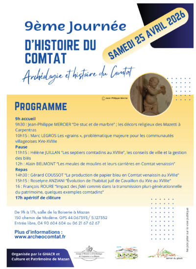 Le samedi 25 avril 2026 se tiendra la 9e journée d’histoire du Comtat à la boiserie de Mazan.