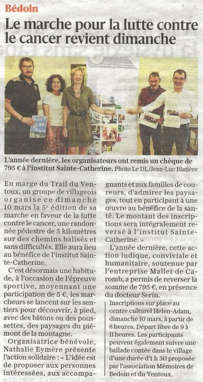 "Les participants peuvent également suivre une ballade contée dans le village d’une durée d’1h30 proposée par l’association Mémoires de Bédoin et du Ventoux".