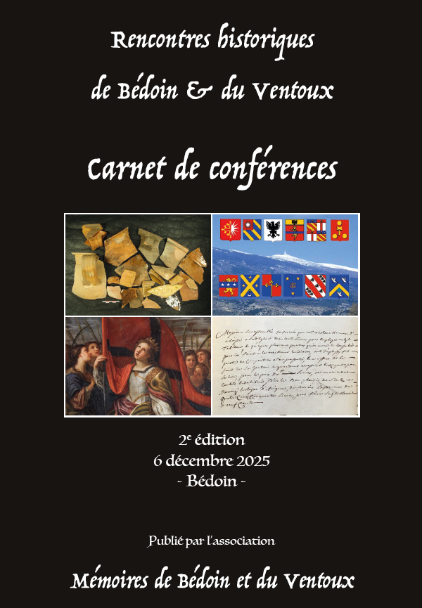 A cette occasion, le carnet des conférences contenant l’intégralité des articles des conférenciers bénévoles a été mis en vente au profit de l’association Mémoires de Bédoin et du Ventoux au prix de 15 €. Quelques exemplaires seront mis en vente à la librairie L’astucieuse renarde de Bédoin à partir du 9 décembre 2025.